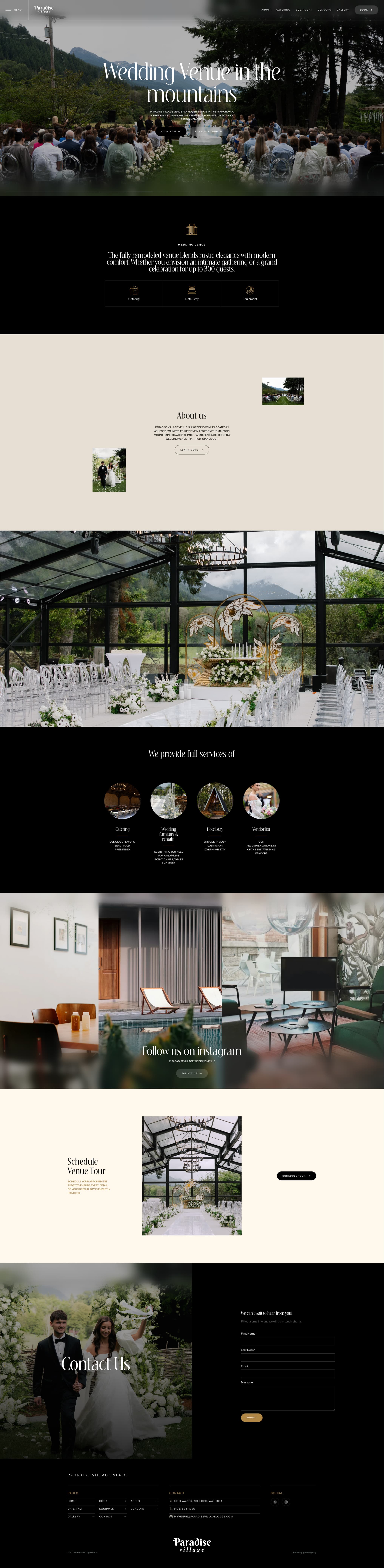 Paradise Venue is a destination wedding location set in the mountains, combining hospitality with event services for couples looking for a scenic, all-in-one venue.